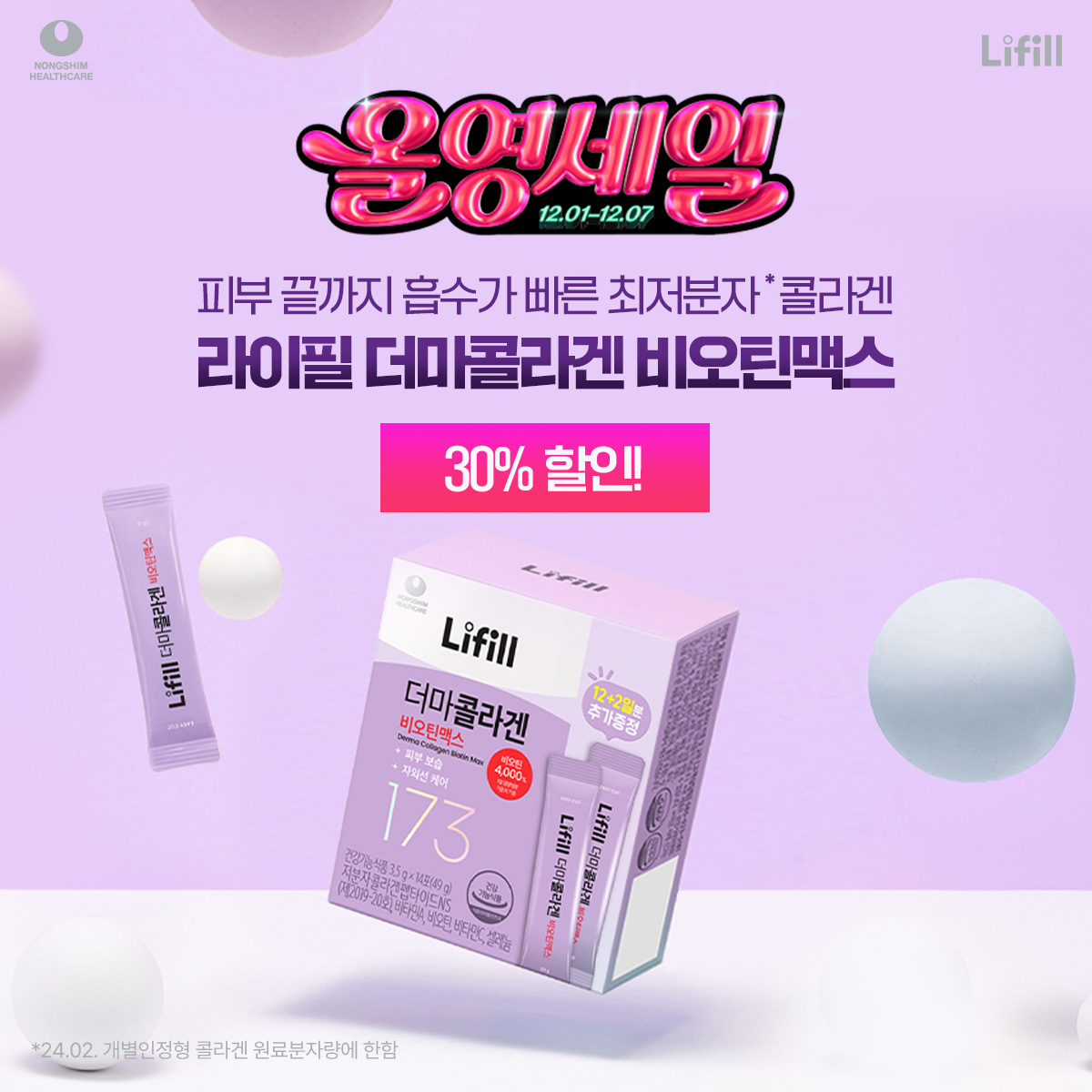 농심 라이필 건강기능식품 더마콜라겐 시그니처 퍼포먼스 광고를 집행했습니다.